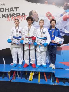 — Ніжніченко Богдан 3 місце куміте хлопці 10-11 років понад 44 кг;