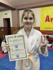 ![]() | Сусіденко Єлізавета Клуб: Вадо-Кай СМГО Регіон: Суми Сертифікат: № 001898 - від 27.12.2021 Кваліфікація: 6 кю Сусіденко Єлізавета![]() Регіон: Суми Клуб: Вадо-Кай СМГО Кваліфікація: 6 кю Номер сертифіката: № 001898 Дата сертифіката: 27.12.2021 |