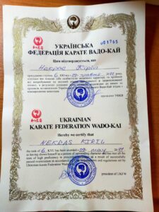 ![]() | Прийма Нестор Клуб: Вадо-Кай СМГО Регіон: Суми Сертифікат: № 001568 - від 29.05.2021 Кваліфікація: 8 кю Прийма Нестор![]() Регіон: Суми Клуб: Вадо-Кай СМГО Кваліфікація: 8 кю Номер сертифіката: № 001568 Дата сертифіката: 29.05.2021 |