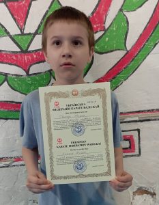![]() | Титаренко Матвій Клуб: Вадо-Кай СМГО Регіон: Суми Сертифікат: № 003526 - від 01.06.2025 Кваліфікація: 7 кю Титаренко Матвій![]() Регіон: Суми Клуб: Вадо-Кай СМГО Кваліфікація: 7 кю Номер сертифіката: № 003526 Дата сертифіката: 01.06.2025 |