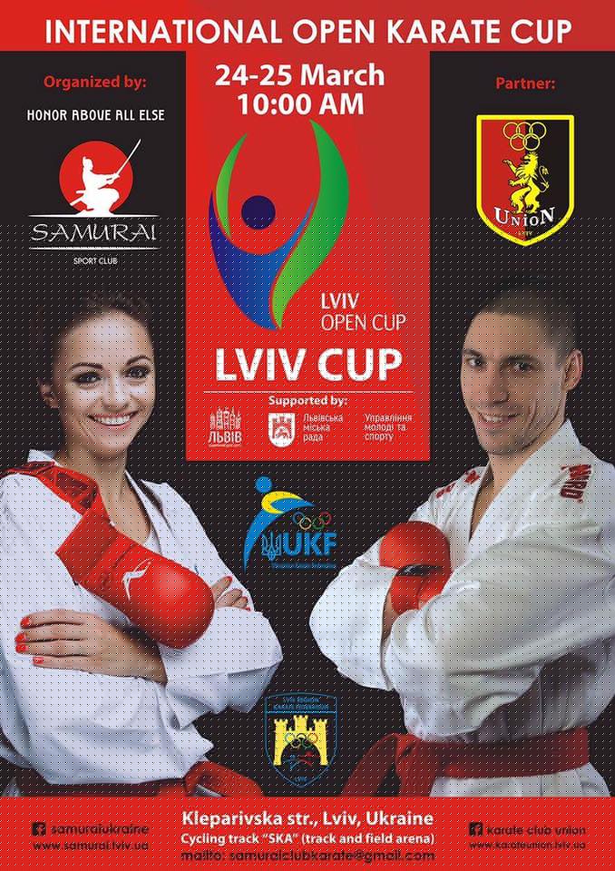 International open karate cup 24-25 March Lviv Вболіваємо за наших спортсменів: Тумаков Валерій – чол. -84 кг, Сабадаш Вікторія – 14-15 -54 кг, Говорун Юлія – 14-15 років ката.